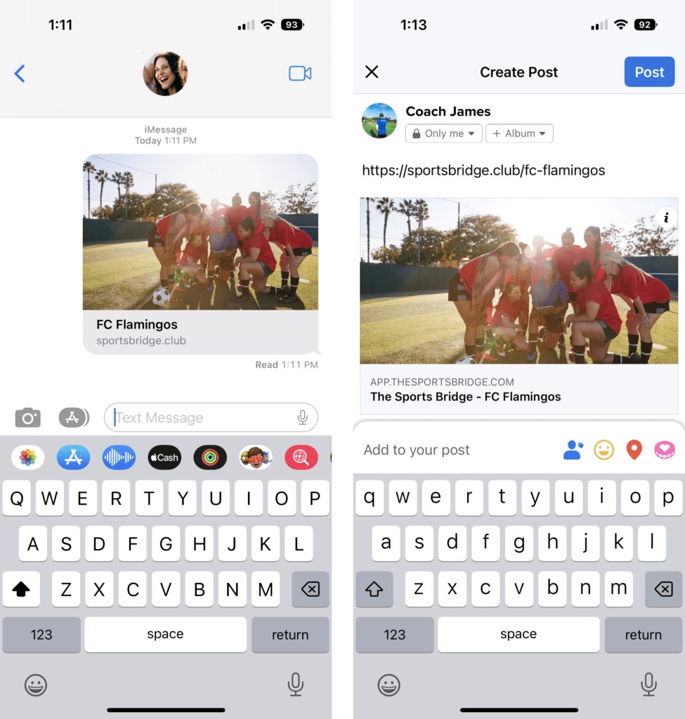 The links look great when you share them, they also pull in your teams name and the cover image of your team to create big beautiful imagery wherever you share your link.