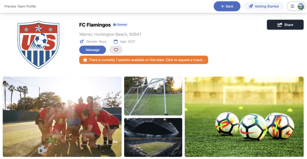 Simply click the blue copy icon at the end of the text box to quick copy, or select the link by highlight the links text. Then you can share your link anywhere you like, through a text to a parent or on Facebook, or in your Instagram bio, these are all great ways to get more views on your team.